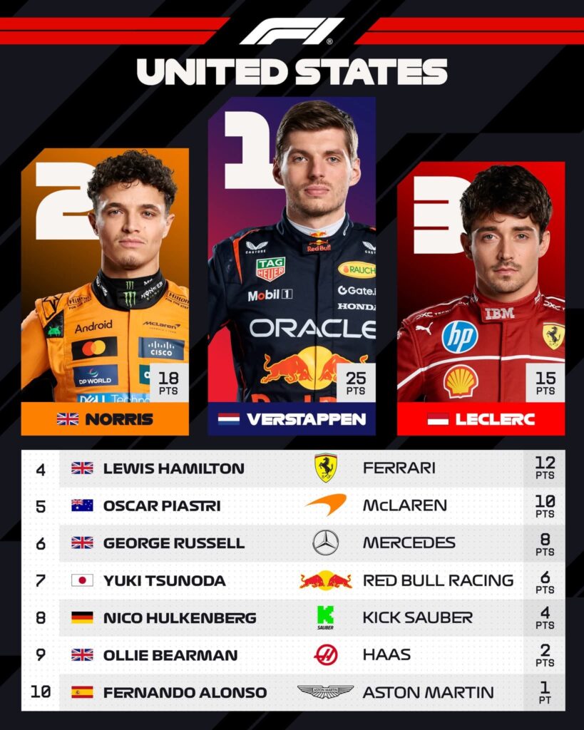 El GP de Estados Unidos 2025 deja un mensaje inequívoco: Verstappen ha vuelto a la pelea.